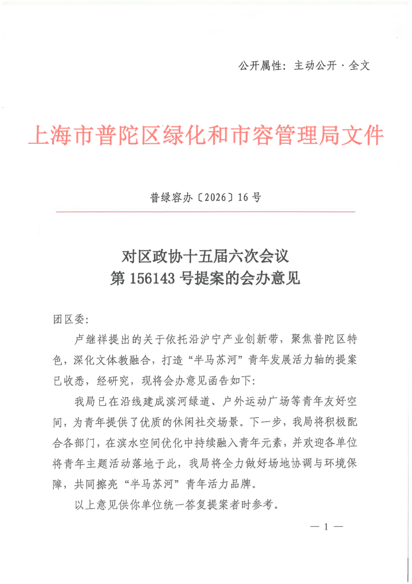 卢继祥提出的关于依托沿沪宁产业创新带,聚焦普陀区特色,深化文体教融合,打造“半马苏河”青年发展活力轴的提案已收悉,经研究,现将会办意见函告如下: