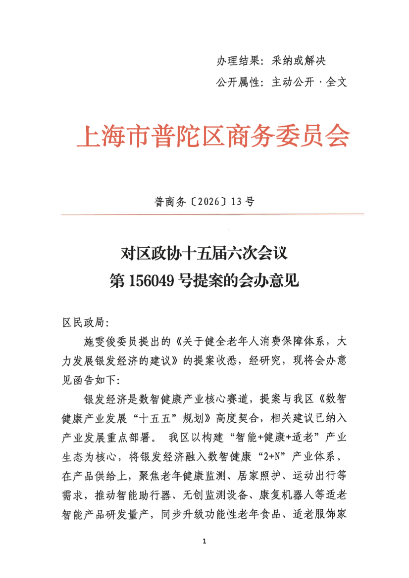 下一步,商务委将结合提案建议,持续优化老年消费环境,强化消费权益保障,推动数智健康与银发经济深度融合,让产业发展成果更好惠及老年群体。
