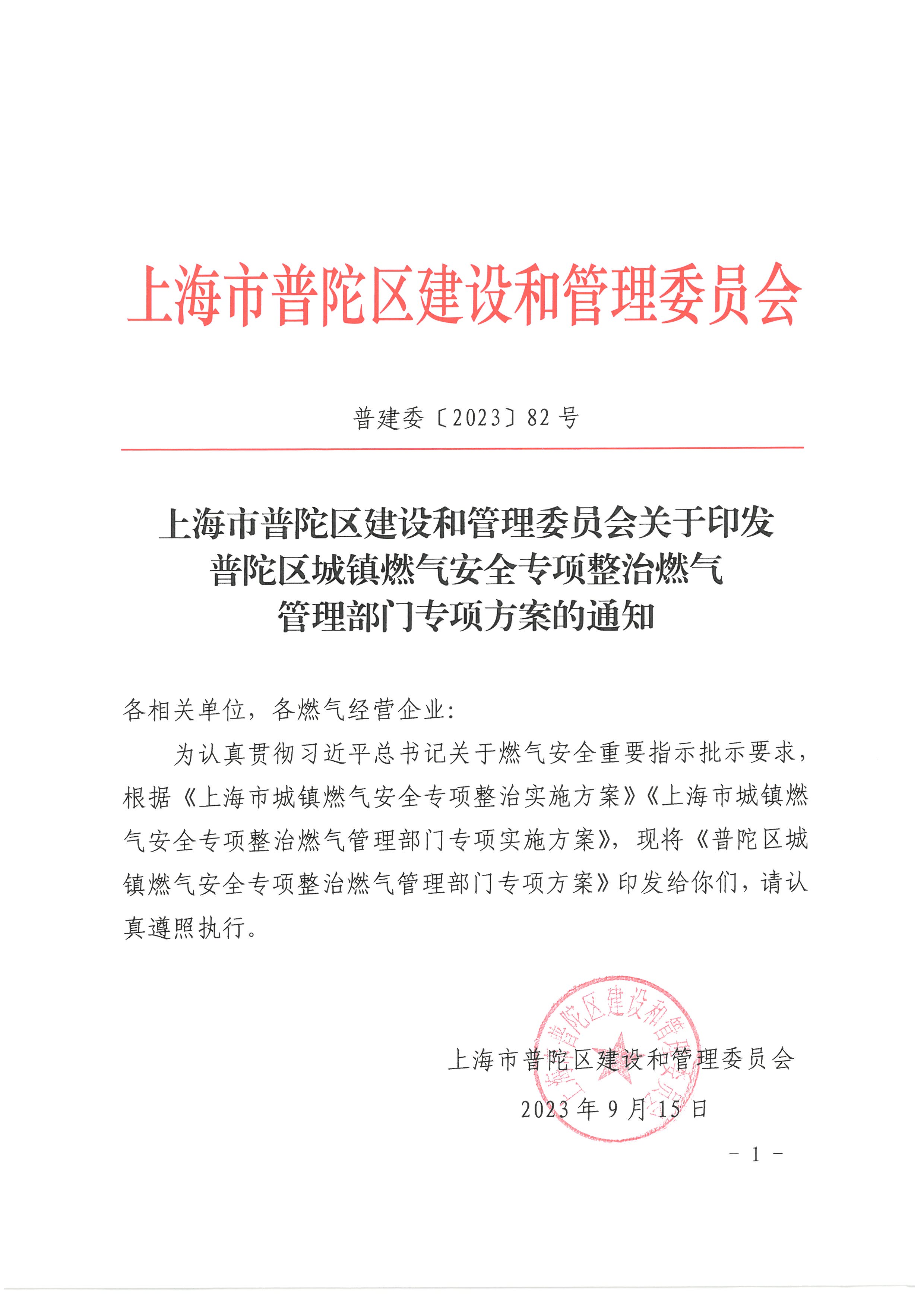 上海市普陀区建设和管理委员会关于印发普陀区城镇燃气安全专项整治燃气管理部门专项方案的通知