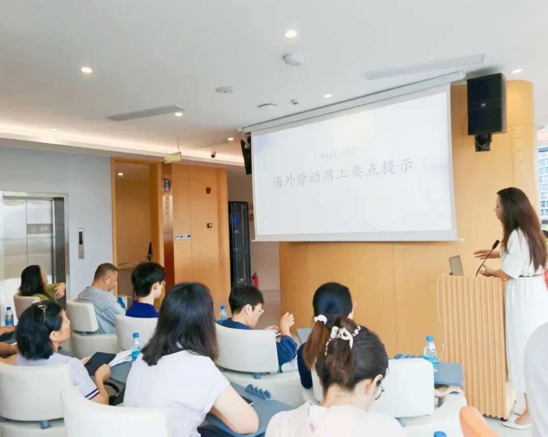 一场聚焦企业“走出去”的实务讲座——《中国企业出海注意事项要点提示》在参观结束后开讲。讲座采用“案例解析+实务指导+互动答疑”的立体服务模式,为企业代表搭建了深入了解海外法律政策与风险防控的优质平台。专业跨境法律服务律师深入浅出地讲解了海外劳动用工、海外仓布局、境外政策法规等内容,有效提升了企业前瞻性法律风险防控能力和纠纷应对的实操水平,为企业拓展海外市场保驾护航。