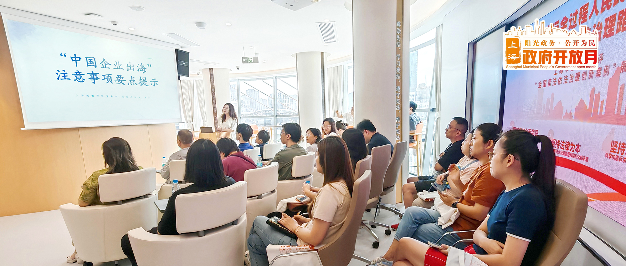 8月14日,普陀区司法局会同区国资委、区工商联、宜川路街道、长寿路街道举办了“走进‘半马苏河’法治驿站,体验多元精准法治服务”政府开放月活动,促进市民深入了解驿站打造的智能化、精准化法治服务体系,提升对法治服务创新模式的获得感和满意度。开放日特别设置《中国企业出海注意事项要点提示》专场讲座,解析海外法律政策与风险防控法律实务,以法治护航企业出海。现场还广泛听取了市民、企业对提升驿站运维效能的意见建议,以持续优化服务内容和形式,助力营造更浓厚的法治氛围。