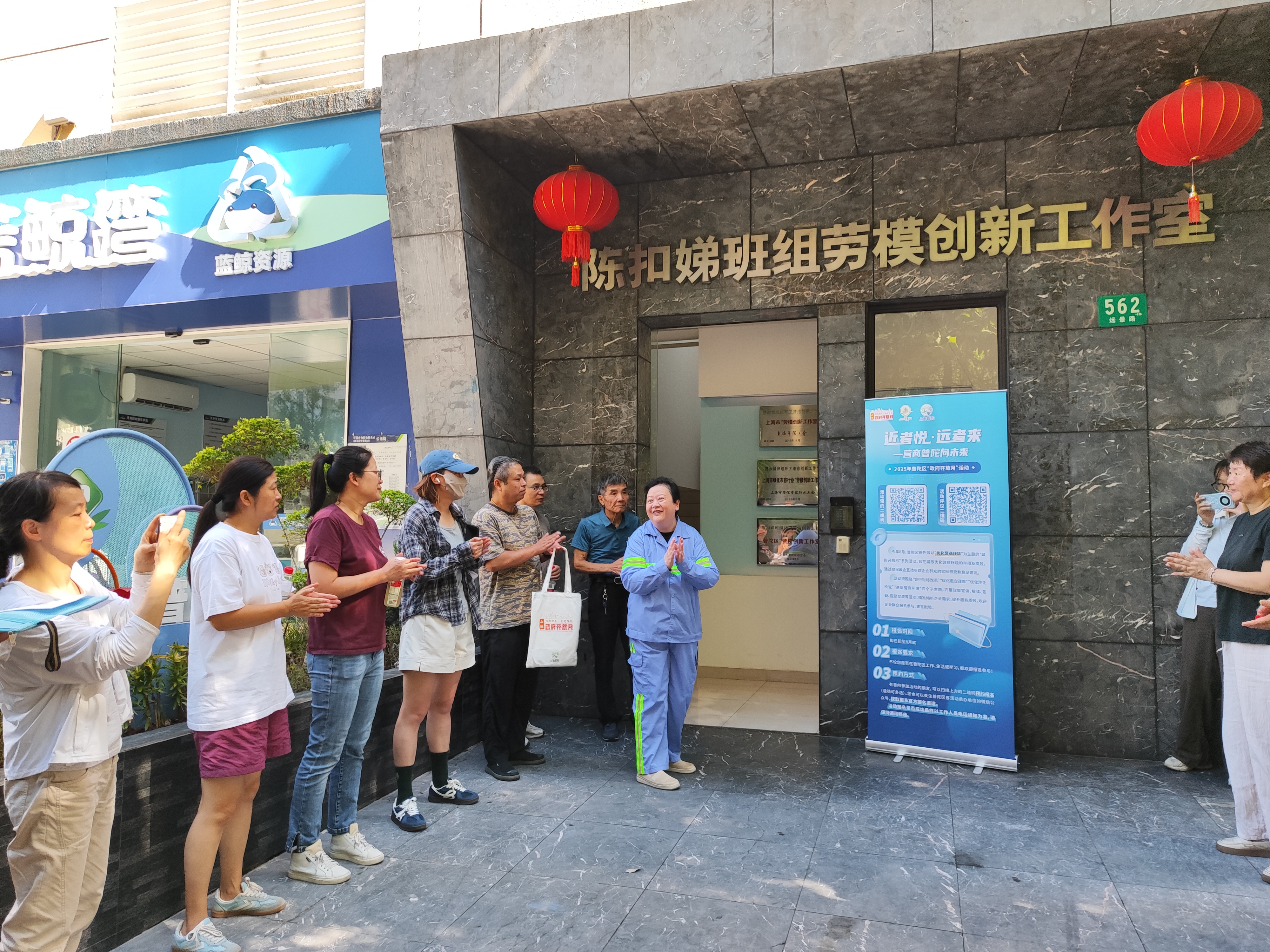 在陈扣娣劳模班组创新工作室,党的二十大代表、普环一分公司陈扣娣劳模班班长成慧,带领市民回溯普陀环卫发展脉络。从陈扣娣同志及历代班组成员的先进事迹,到传统人工模式向智慧环卫作业的转型,市民们深刻感悟城市美容师们爱岗敬业、守正创新的“绣花精神”。