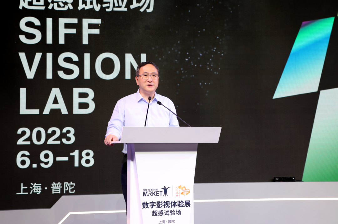 高韵斐在致辞中表示,当前,上海正在积极推进城市数字化转型。作为全球关注的光影盛会,上海国际电影节主动拥抱电影产业的新机遇、新技术,以高度的前瞻性,交汇电影科技新趋势、新动向。希望此次“数字影视体验展——超感试验场”活动的举办,能够给上海乃至于全国影视行业掀起新的“数字风暴”,共同展望影视行业数字化发展的趋势和愿景,助力中国影视提升工业化水平,推动中国影视文化走出去。同时,“数字影视体验展——超感试验场”作为上海国际电影节公益惠民、丰富大众文化精神生活的新抓手,上海市电影局将和普陀区共同携手,做好服务,通过一系列活动把先进的技术、新奇的体验、深度的内容、丰富的文创与精彩的文旅资源送到百姓身边,让大家有收获、有发现、有回味,共享数字影视的丰硕成果和无限未来。