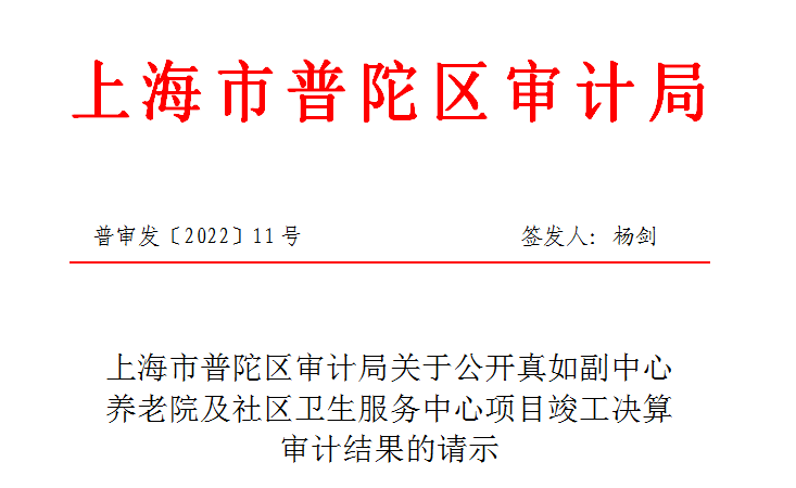 真如副中心养老院及社区卫生服务中心项目竣工决算审计结果