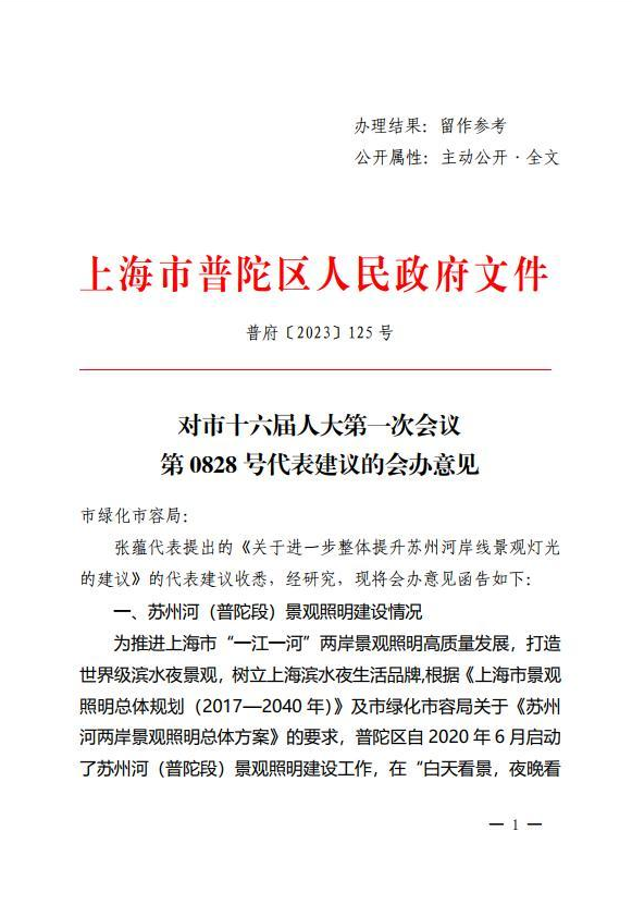 张蕴代表提出的《关于进一步整体提升苏州河岸线景观灯光的建议》的代表建议收悉,经研究,现将会办意见函告如下: