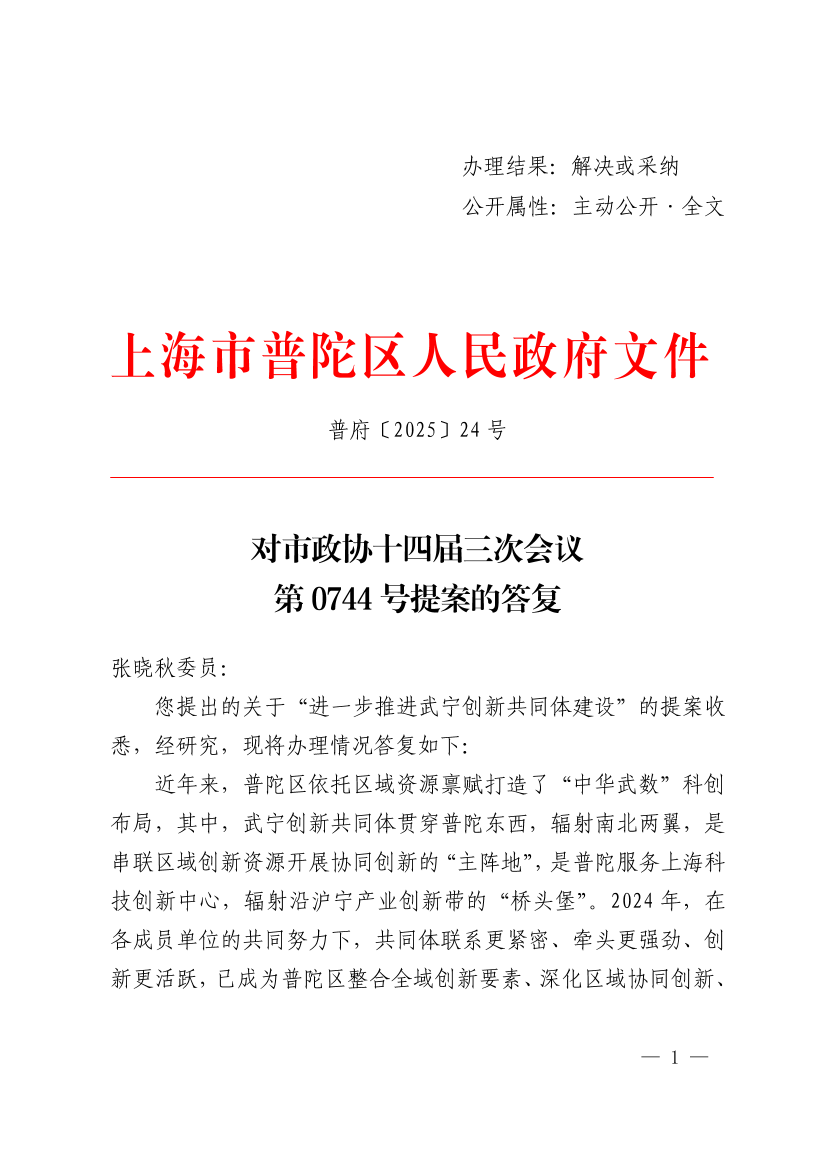 您提出的关于“进一步推进武宁创新共同体建设”的提案收悉,经研究,现将办理情况答复如下: