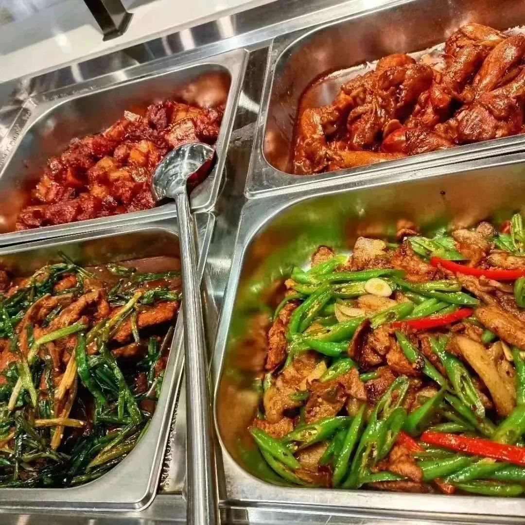 有红烧肉、糖醋小排、红烧鲈鱼等能大快朵颐的肉食,还有五香素鸡、清炒绿豆芽、小炒包菜等清淡菜品,汤品每天会准备不同的两样,并免费供居民食用,荤素搭配均衡,且饭菜的整体调味不重,也不油腻,都是接地气的家常好味道,其中,招牌菜红烧肉最受居民们的欢迎。