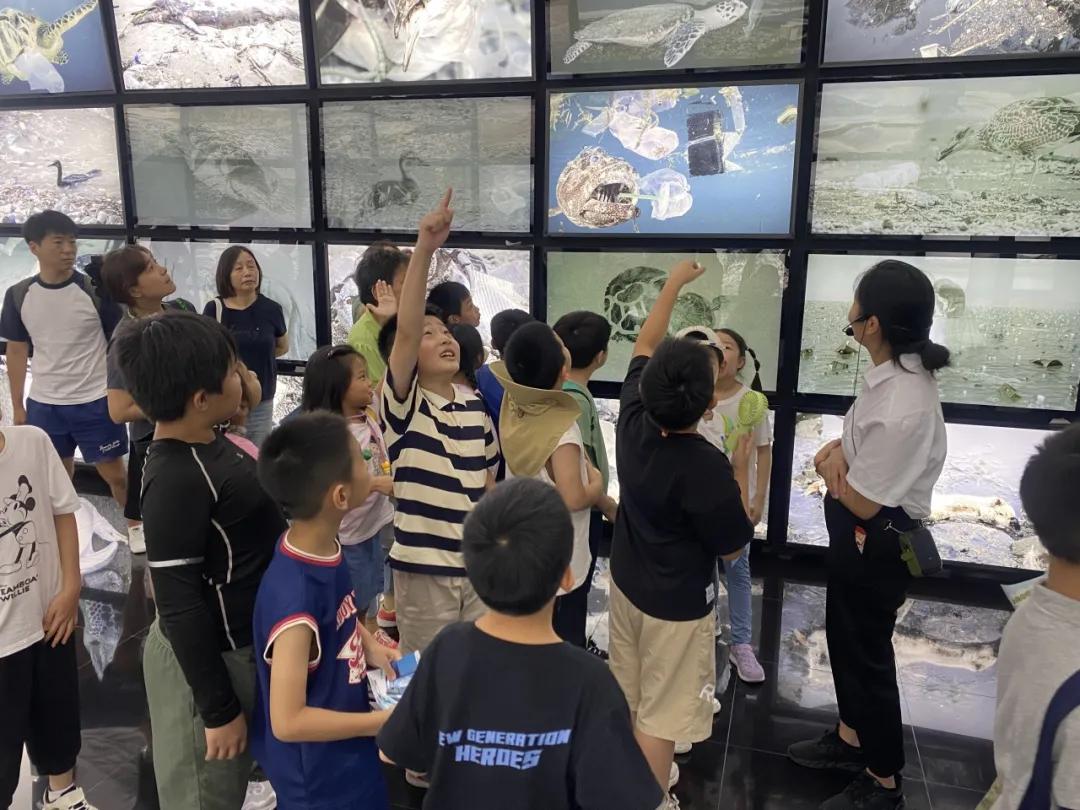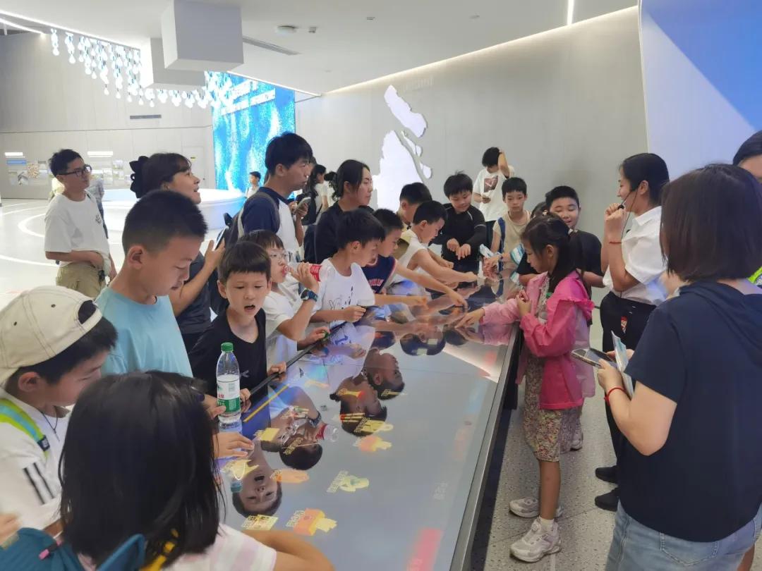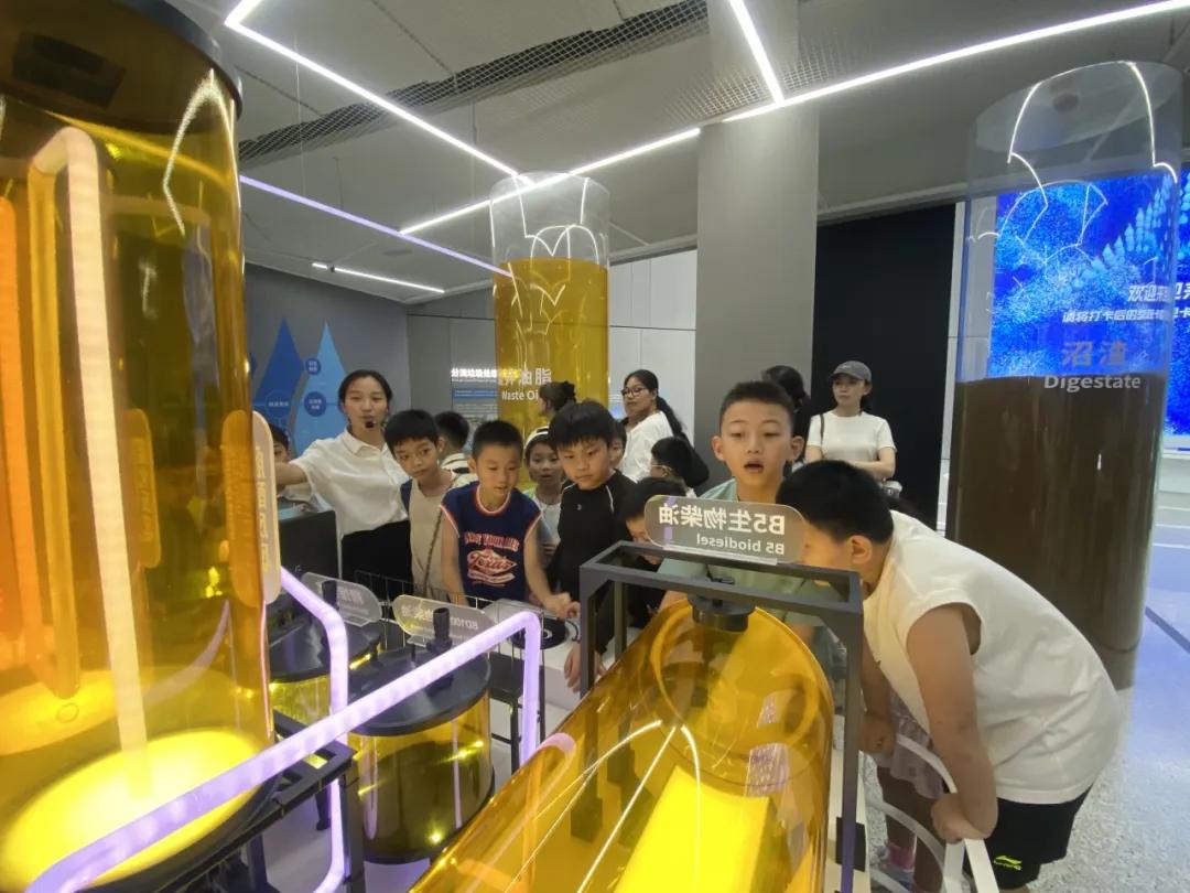 孩子们跟着老港科普馆讲解员首先进入到生活垃圾科普展示馆,在观看“绿色之城”宣传片后,大家跟着讲解员的引导进入展馆,兴致勃勃地在展厅中学习,仔细阅读展板上的科普知识,查看垃圾降解演示沙盘,参与垃圾分类知识问答互动打卡游戏。了解了生活垃圾产生、收集、运输、处理和资源化再利用的全过程。