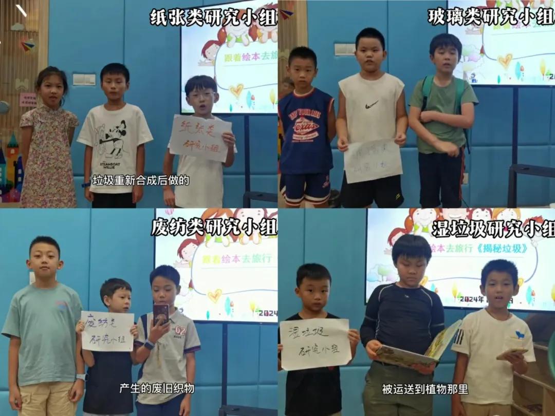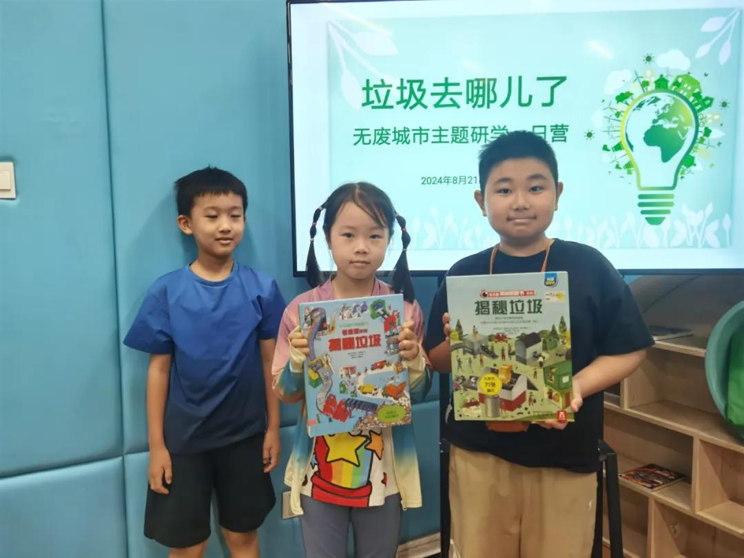 出发前,孩子们在万家书房,先进行了分组讨论,科普老师张婷婷先给孩子们上了初识垃圾分类课,提前学习了何为垃圾分类、什么是无废城市?