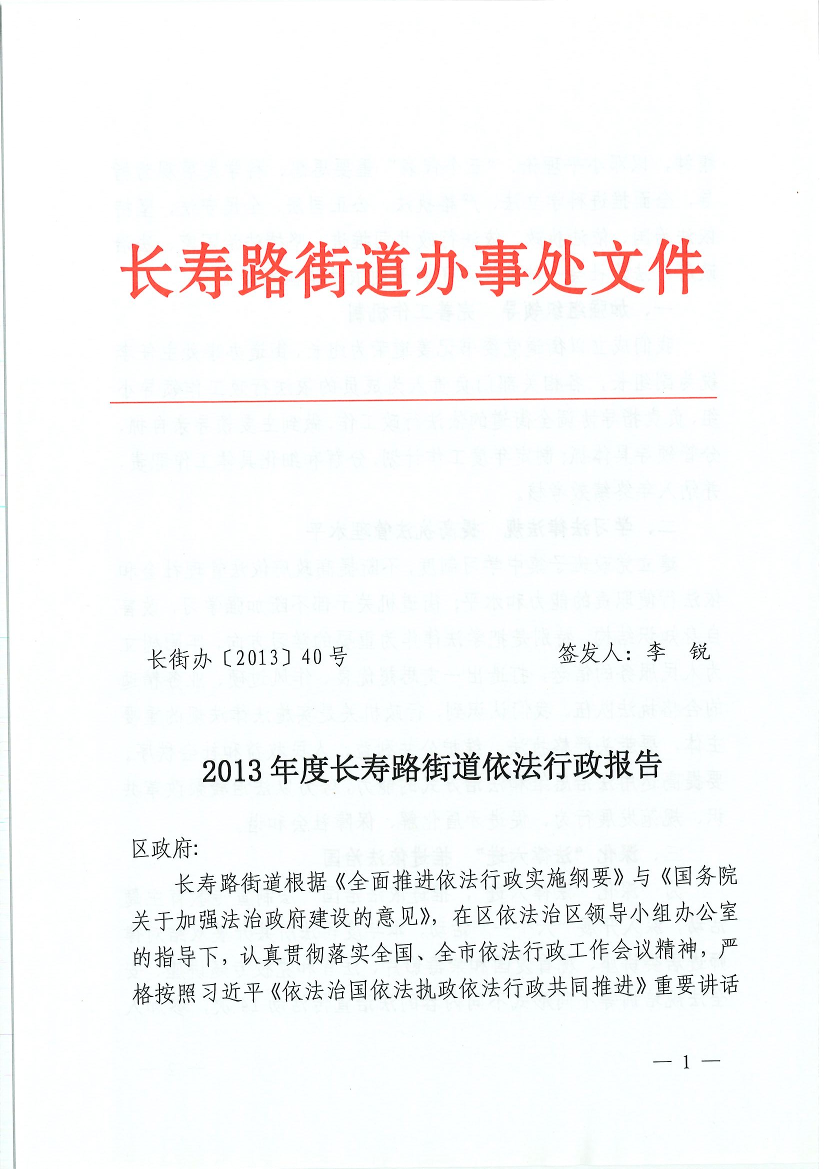 2013年度长寿路街道依法行政报告