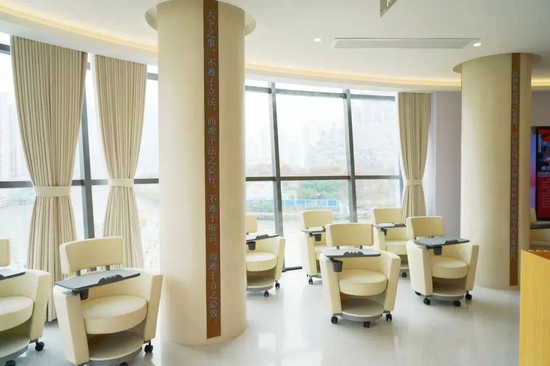 在这里,“法治带头人”“法律明白人”或在“法章映辉”多功能活动厅观看一场法治电影;或在“法光暖阁”参加一场沙龙、座谈、交流,享受阳光和窗外美景的同时,碰撞“思想火花”,掀起法治“头脑风暴”。“听讼讲法”行政复议听证室会聚集复议案件组织区政府法律顾问、专家学者等各方力量,进行听证或谈话,以案明理、以案说法,积极引导基层部门及公众参与旁听,切实增强基层依法治理能力。“听讼讲法”法治直播间还将定期组织律师、公证员、司法鉴定技术人员、法律明白人进行直播,传播先进法治经验。