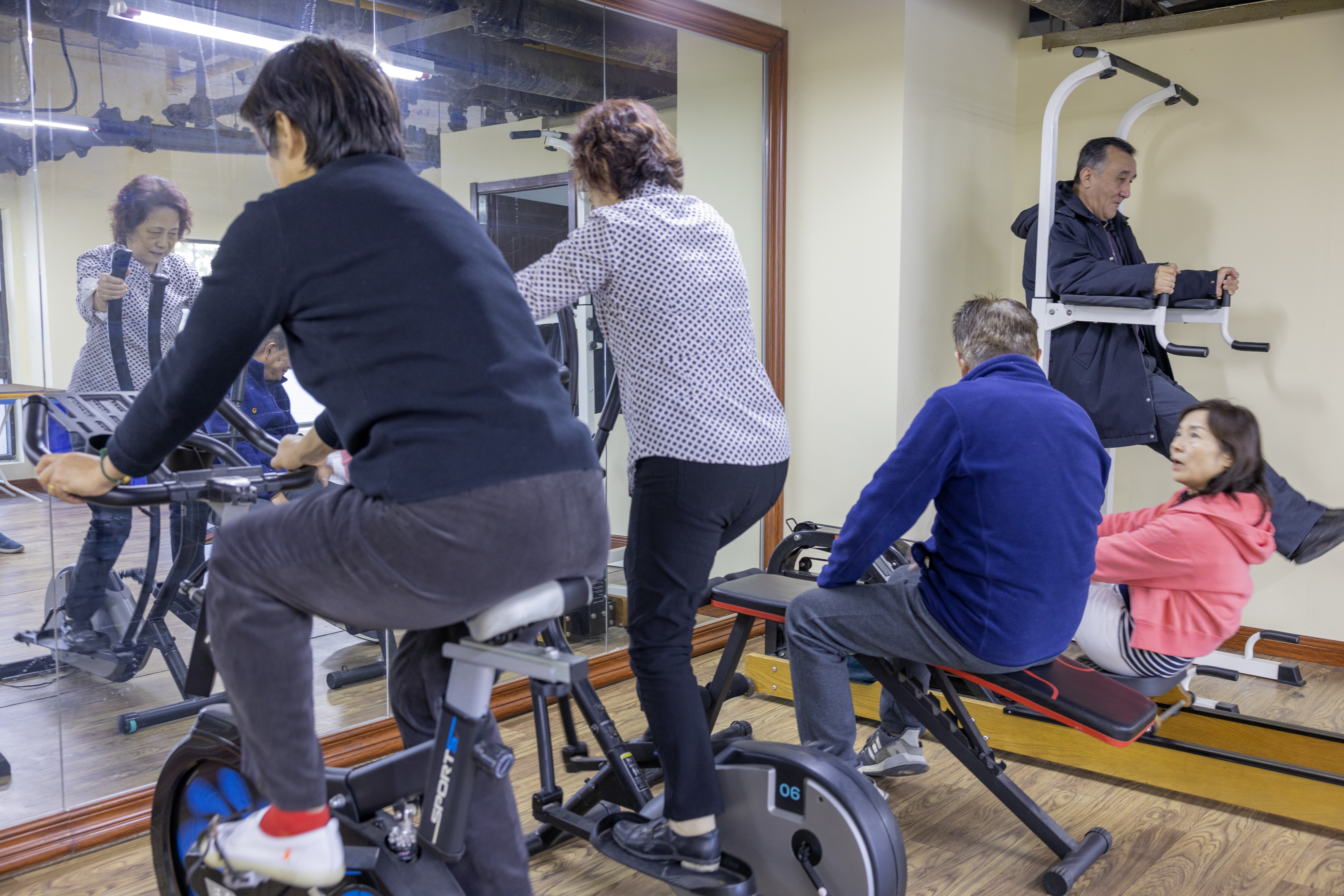 如今,这一空间承载着多元功能:既是飘扬着党旗的“红色加油站”,成为了支部党员开展组织生活、研读党建书籍的精神阵地;也是居民协商议事的“民主议事厅”,楼栋事务在此群策群力、凝聚邻里智慧,实现“小事不出楼栋”;更成为老少皆宜的“民生乐园”,跑步机、乒乓球桌与茶座相映成趣,晨光中飘着茶香,黄昏时跃动着健身身影,周末洋溢着亲子活动的欢声。