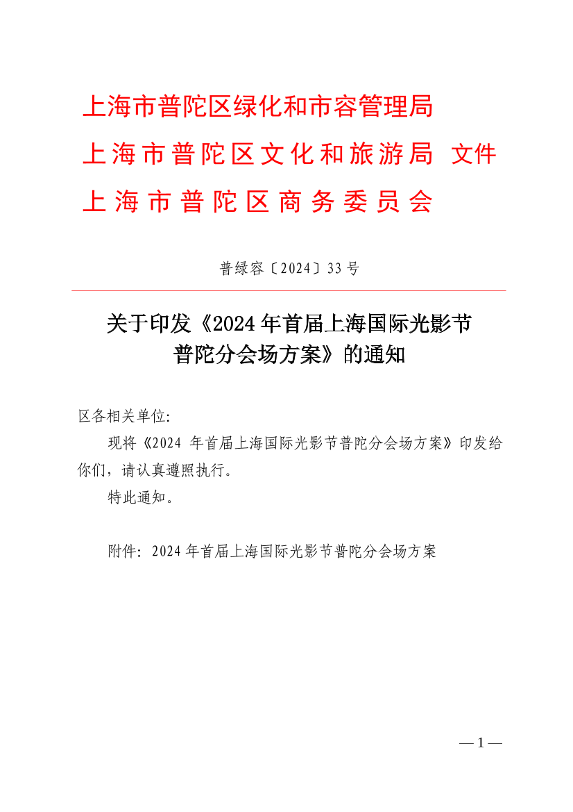 关于印发《2024年首届上海国际光影节普陀分会场方案》的通知