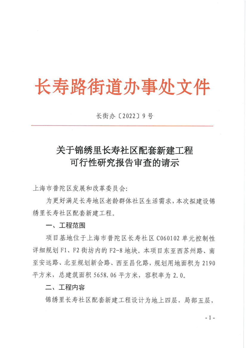 关于锦绣里长寿社区配套新建工程可行性研究报告审查的请示