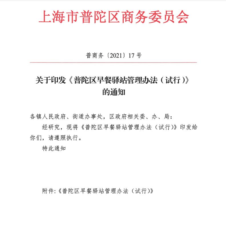 关于印发《普陀区早餐驿站管理办法(试行)》 的通知