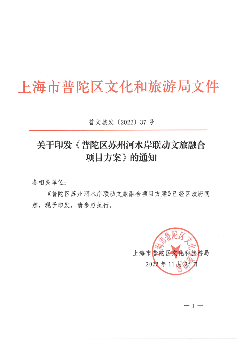 关于印发《普陀区苏州河水岸联动文旅融合项目方案》的通知