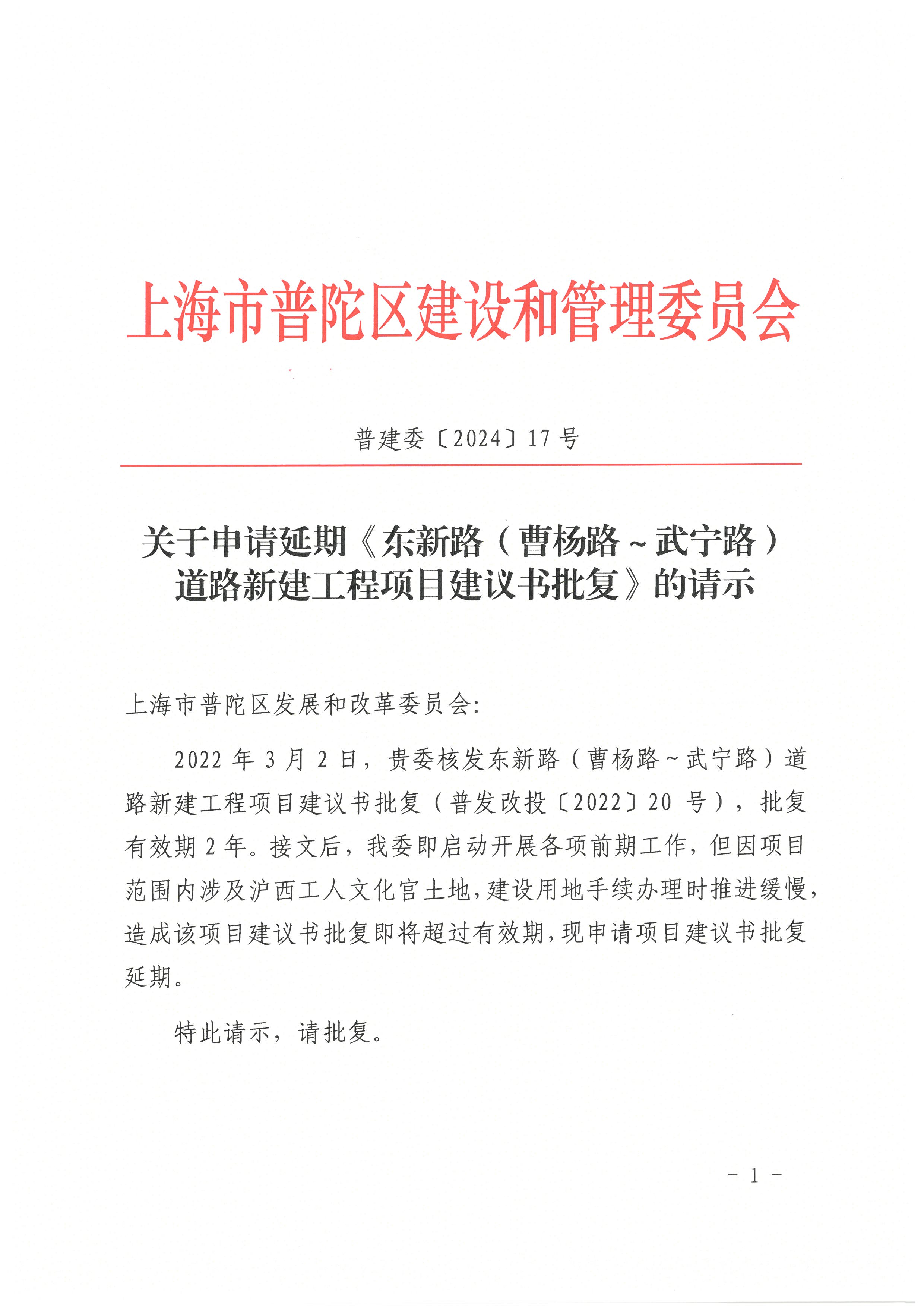关于申请延期《东新路(曹杨路~武宁路)道路新建工程项目建议书批复》的请示