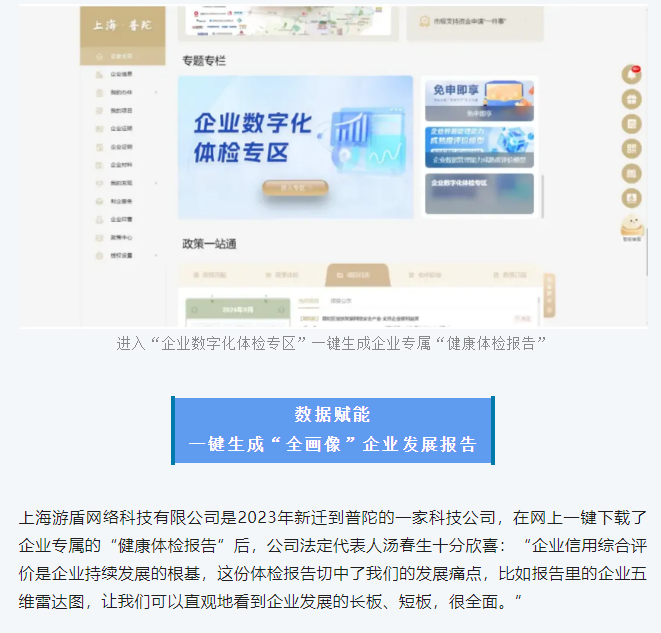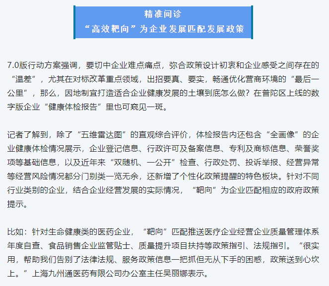 “一网通办”、一键生成——普陀全市首发上线数字版企业“健康体检”服务