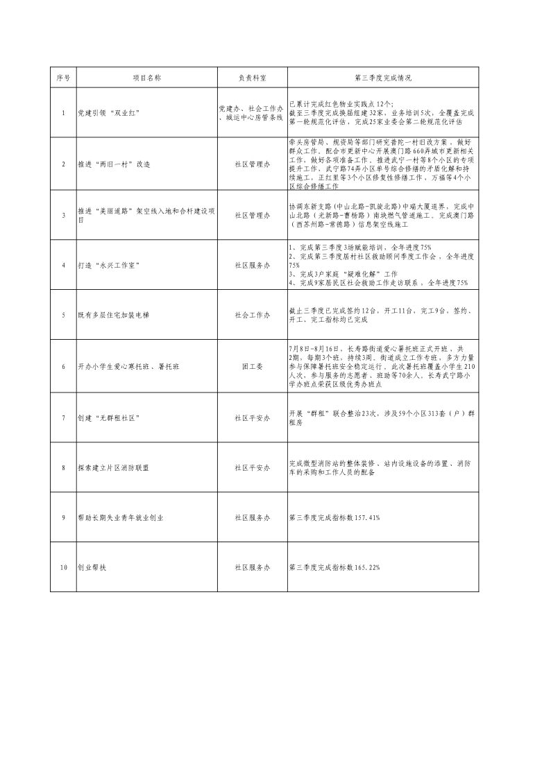 普陀区长寿路街道2024年实事项目进度表(三季度)