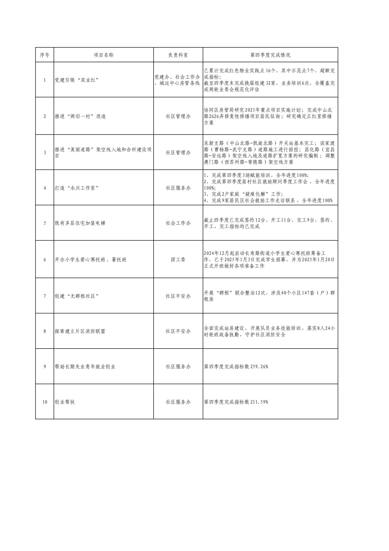 普陀区长寿路街道2024年实事项目进度表(四季度)