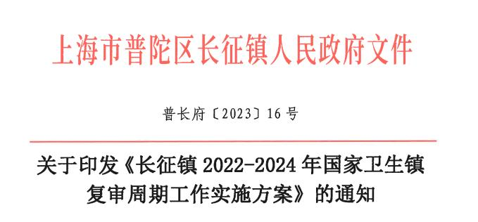 关于印发《长征镇2022-2024年国家卫生镇复审周期工作实施方案》的通知
