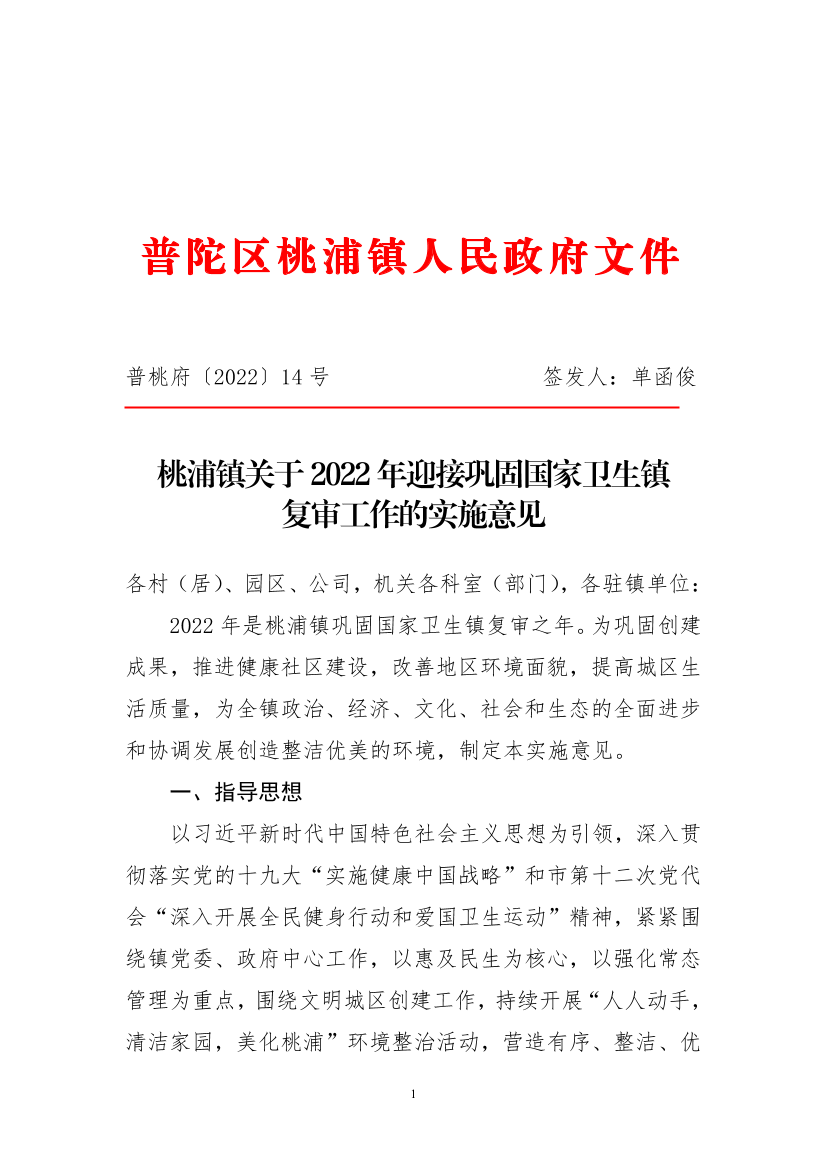 2022年是桃浦镇巩固国家卫生镇复审之年。为巩固创建成果,推进健康社区建设,改善地区环境面貌,提高城区生活质量,为全镇政治、经济、文化、社会和生态的全面进步和协调发展创造整洁优美的环境,制定本实施意见。