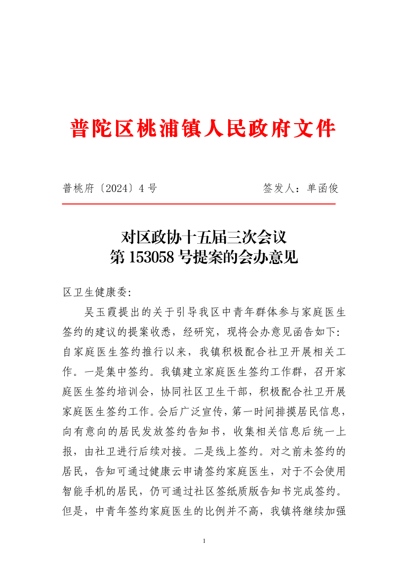 吴玉霞提出的关于引导我区中青年群体参与家庭医生签约的建议的提案收悉,经研究,现将会办意见函告如下:自家庭医生签约推行以来,我镇积极配合社卫开展相关工作。一是集中签约。我镇建立家庭医生签约工作群,召开家庭医生签约培训会,协同社区卫生干部,积极配合社卫开展家庭医生签约工作。会后广泛宣传,第一时间排摸居民信息,向有意向的居民发放签约告知书,收集相关信息后统一上报,由社卫进行后续对接。二是线上签约。对之前未签约的居民,告知可通过健康云申请签约家庭医生,对于不会使用智能手机的居民,仍可通过社区签纸质版告知书完成签约。但是,中青年签约家庭医生的比例并不高,我镇将继续加强宣传力度,首先引导机关、企事业单位职工积极响应家庭医生签约工作,其次通过微信公众号、居民微信群、社区电子屏宣传等方式,让上班族、年轻人知晓家庭医生签约服务的内涵和意义,同时发挥以“老”带“小”作用,提高中青年群体对家庭医生的知晓度和参与度。