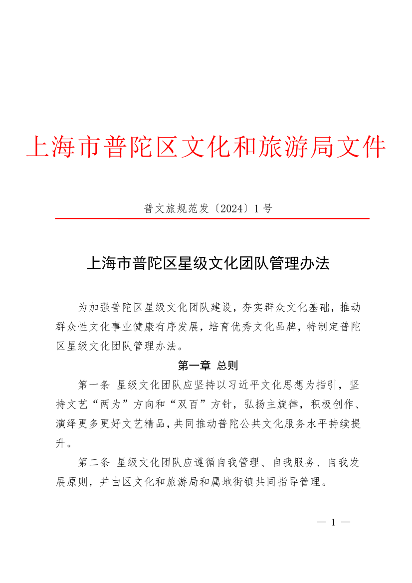 为加强普陀区星级文化团队建设,夯实群众文化基础,推动群众性文化事业健康有序发展,培育优秀文化品牌,特制定普陀区星级文化团队管理办法。
