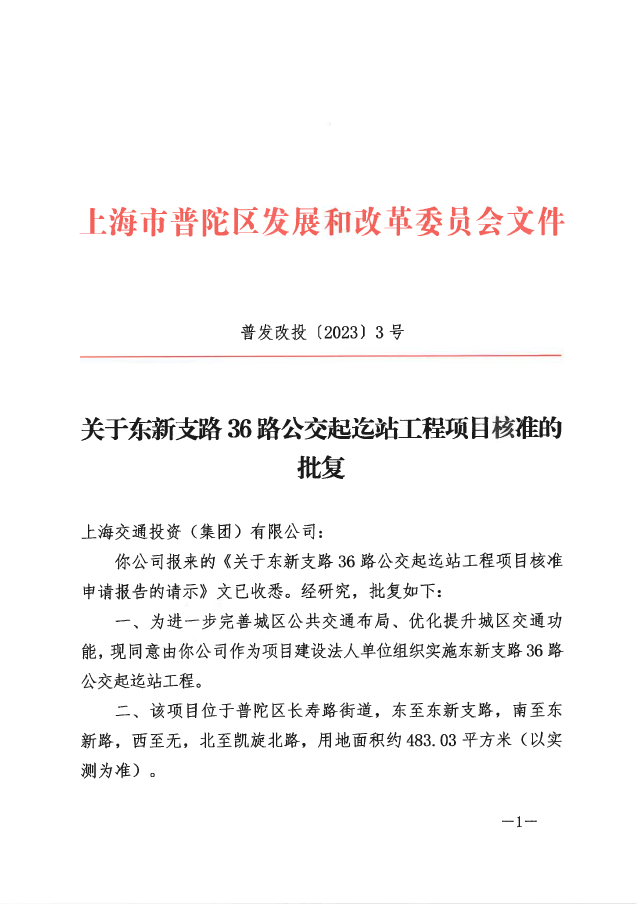 一、为进一步完善城区公共交通布局、优化提升城区交通功能,现同意由你公司作为项目建设法人单位组织实施东新支路36路公交起迄站工程。