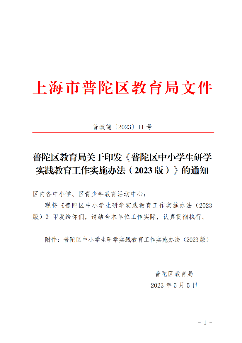 关于印发《普陀区中小学生研学实践教育工作实施办法(2023版)》的通知