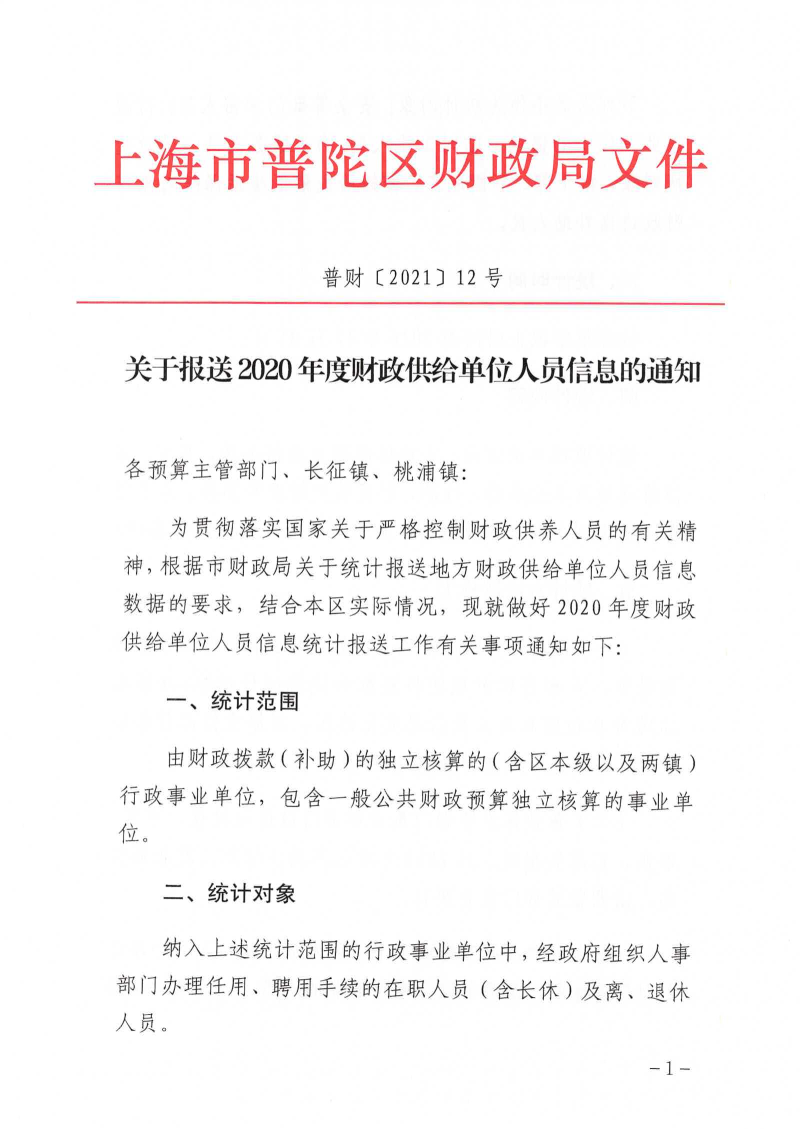 为贯彻落实国家关于严格控制财政供养人员的有关精神,根据市财政局关于统计报送地方财政供给单位人员信息数据的要求,结合本区实际情况,现就做好2020年度财政供给单位人员信息统计报送工作有关事项通知如下: