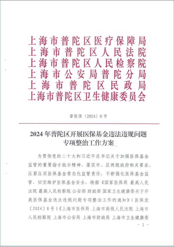 2024年普陀区开展医保基金违法违规问题专项整治工作方案