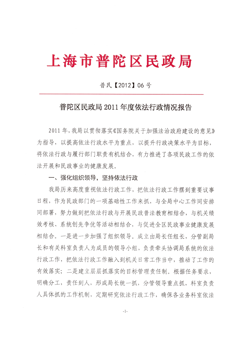 2011年,我局以贯彻落实《国务院关于加强法治政府建设的意见》为指导,以提高依法行政水平为重点,以提升行政决策水平为目标,将依法行政与履行部门职责有机结合,有力推进了各项民政工作的依法开展和民政事业的健康发展。