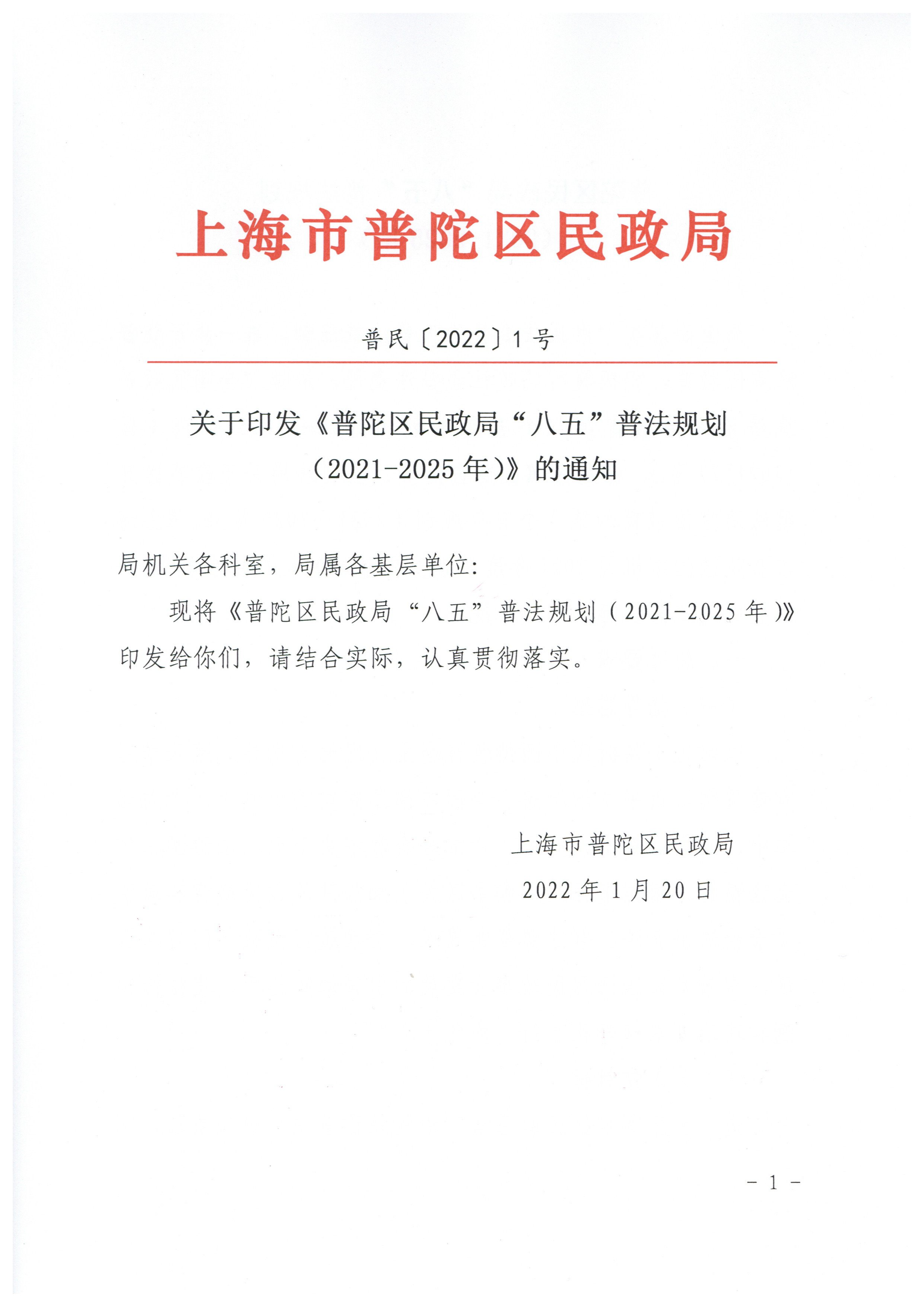 关于印发《普陀区民政局“八五”普法规划(2021-2025年)》的通知