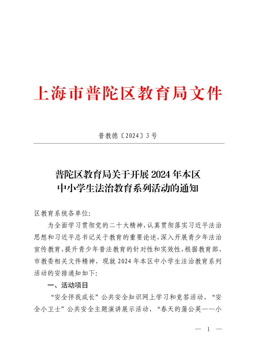 附件:1.2024年普陀区中小学生法治教育系列活动安排表