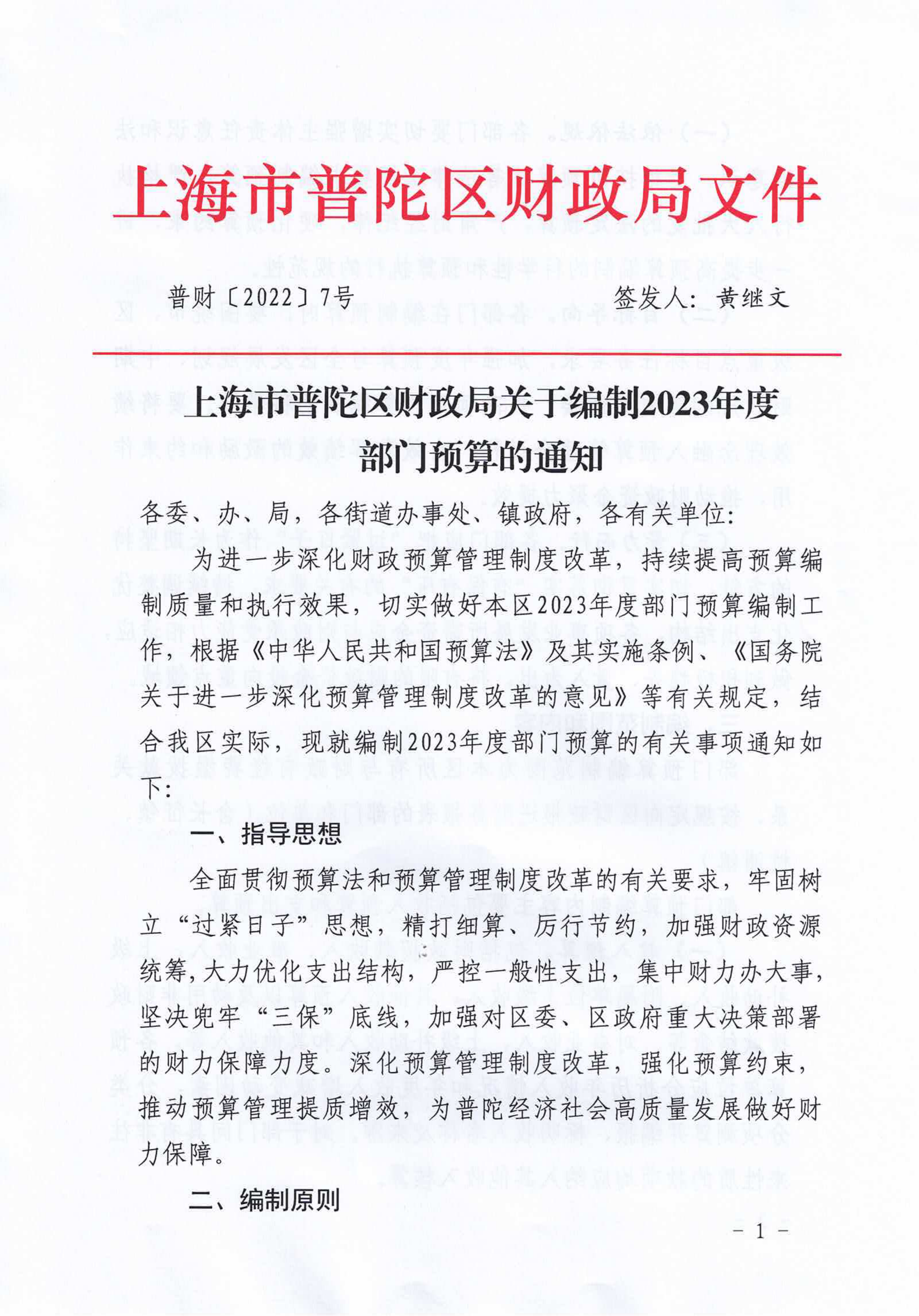 上海市普陀区财政局关于编制2023年度部门预算的通知