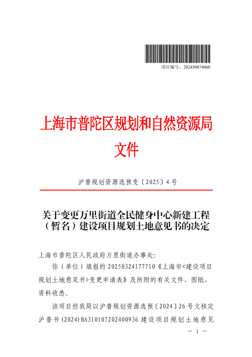 该项目经我局以沪普规划资源选预〔2024〕26号文核定沪普书(2024)BA310107202400936建设项目规划土地意见书。现你单位申请变更。