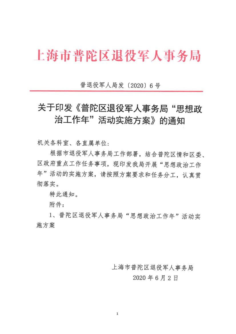 关于印发《普陀区退役军人事务局“思想政治工作年”活动实施方案》的通知