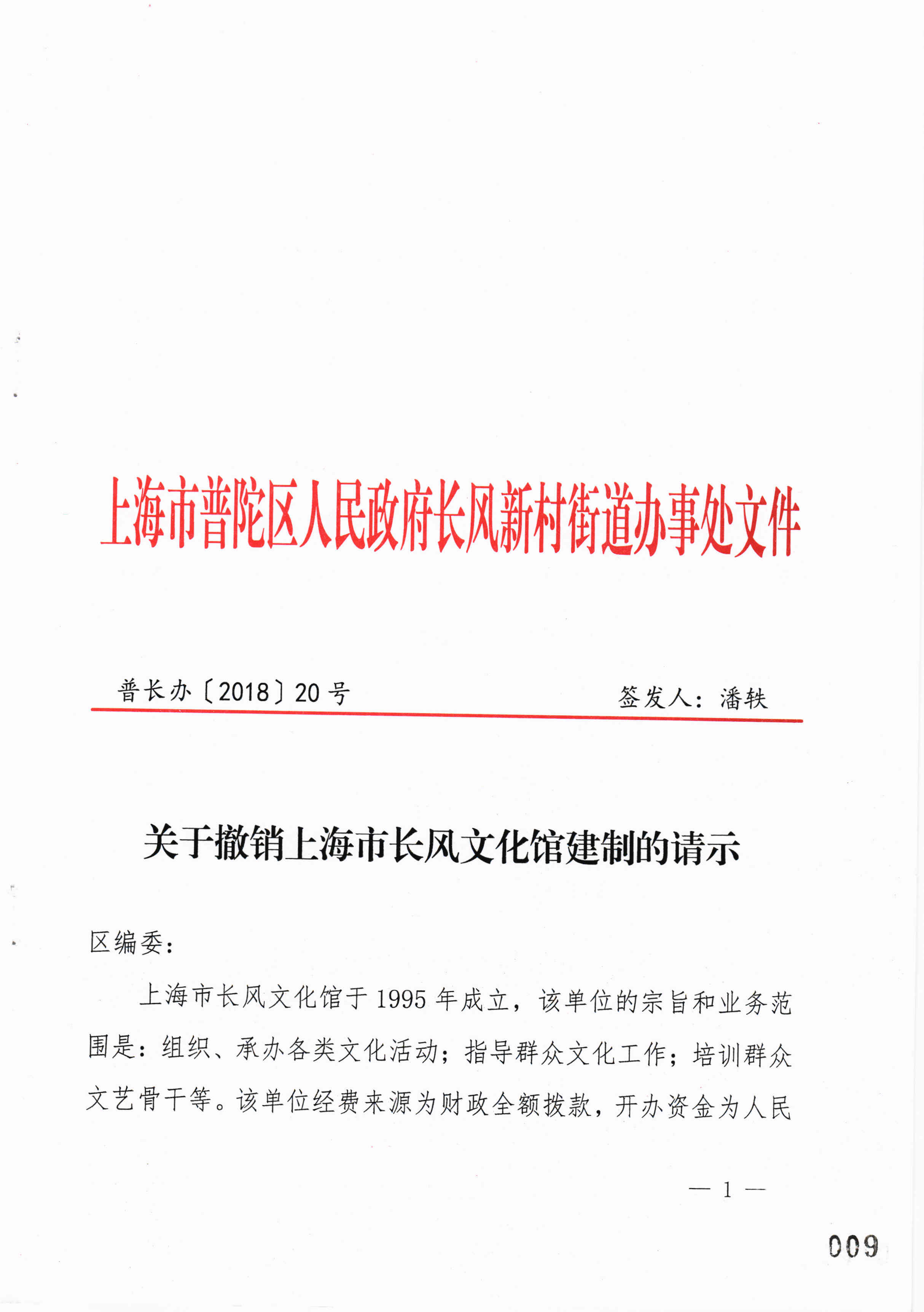 上海市长风文化馆于1995年成立,该单位的宗旨和业务范围是:组织、承办各类文化活动;指导群众文化工作;培训群众文艺骨干等。该单位经费来源为财政全额拨款,开办资金为人民币1138万元。根据普编﹝2015﹞11号文件的相关精神,我街道拟撤销上海市长风文化馆建制。
