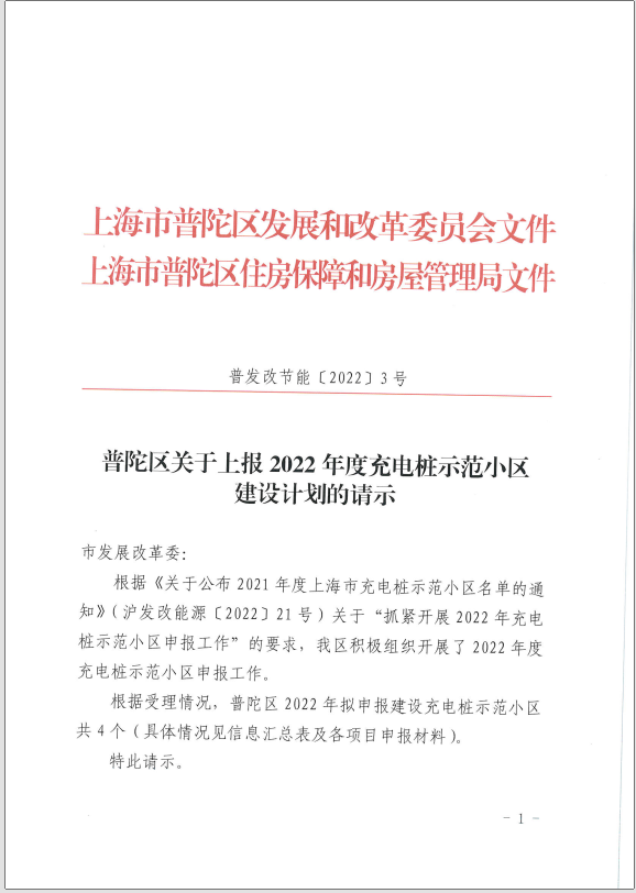 普陀区关于上报2022年度充电桩示范小区建设计划的请示