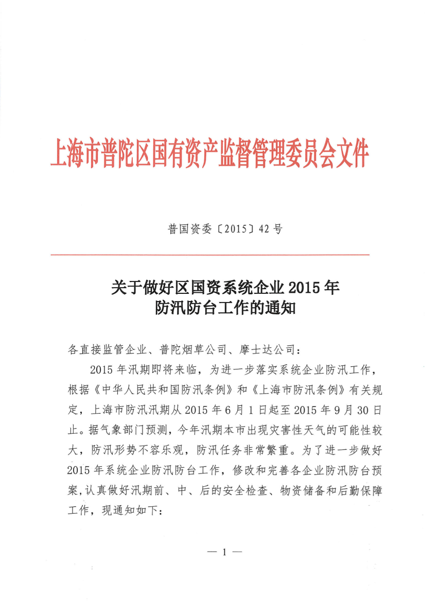 关于做好区国资系统企业2015年防汛防台工作的通知