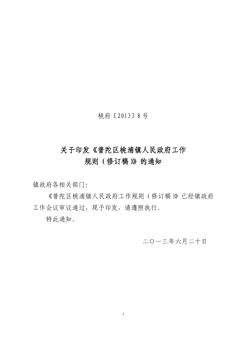 关于印发《普陀区桃浦镇人民政府工作规则(修订稿)》的通知