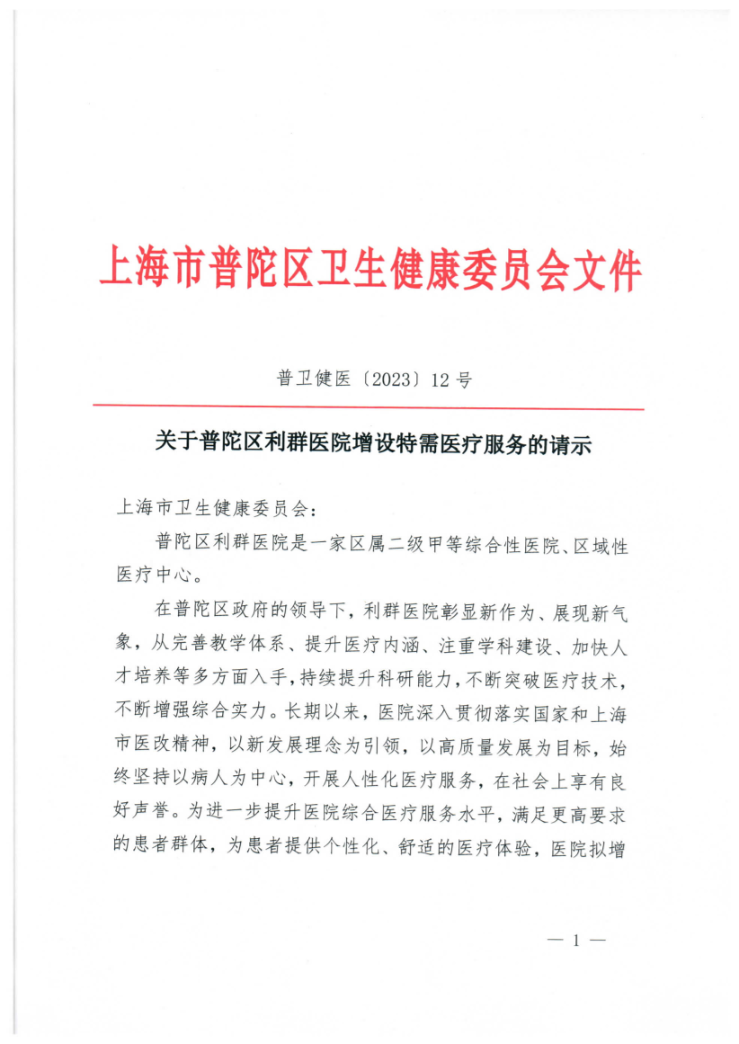 在普陀区政府的领导下,利群医院彰显新作为、展现新气象,从完善教学体系、提升医疗内涵、注重学科建设、加快人才培养等多方面入手,持续提升科研能力,不断突破医疗技术,不断增强综合实力。长期以来,医院深入贯彻落实国家和上海市医改精神,以新发展理念为引领,以高质量发展为目标,始终坚持以病人为中心,开展人性化医疗服务,在社会上享有良好声誉。为进一步提升医院综合医疗服务水平,满足更高要求的患者群体,为患者提供个性化、舒适的医疗体验,医院拟增设特需门诊服务。