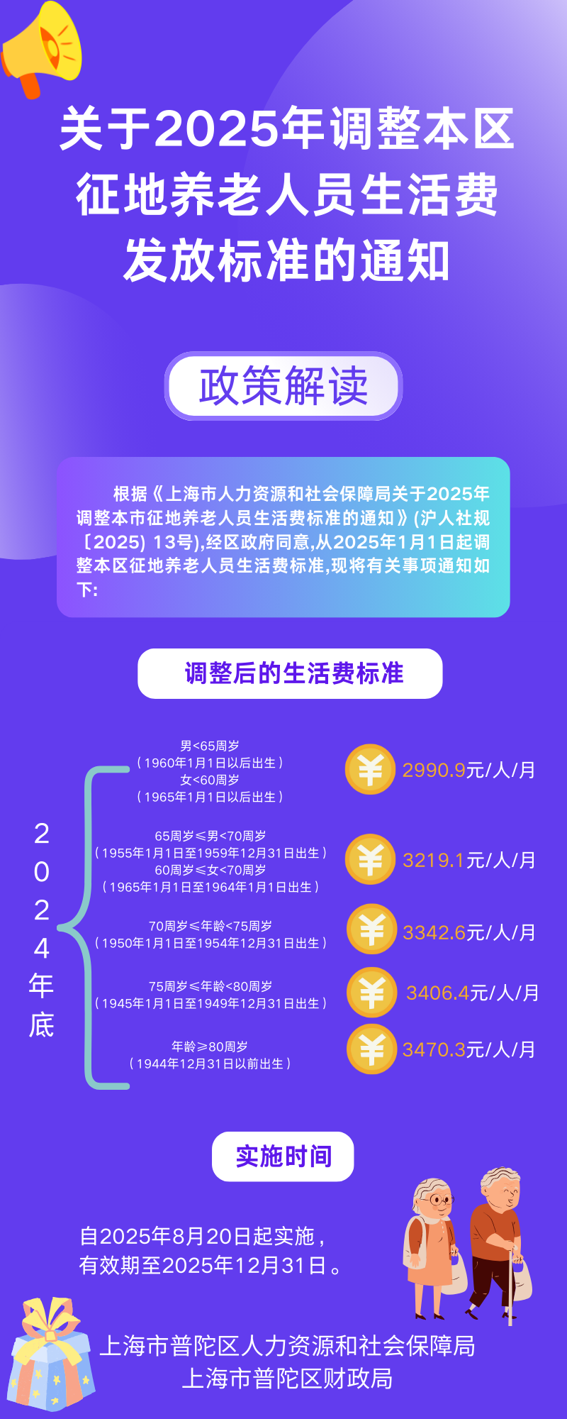 图解:上海市普陀区人力资源和社会保障局 上海市普陀区财政局关于2025年调整本区征地养老人员生活费发放标准的通知