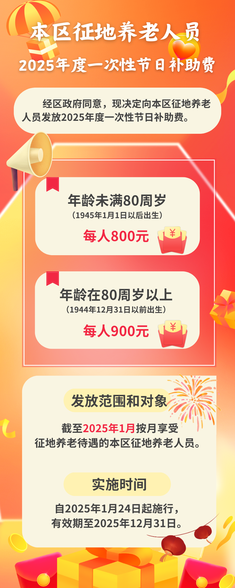 图解 : 关于对本区征地养老人员发放2025年度一次性节日补助费的通知