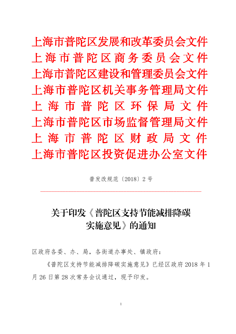 关于印发《普陀区支持节能减排降碳实施意见》的通知