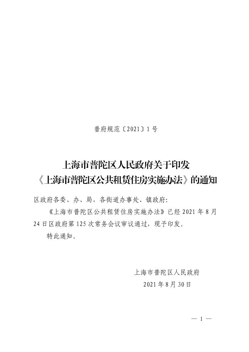《上海市普陀区公共租赁住房实施办法》已经2021年8月24日区政府第125次常务会议审议通过,现予印发。