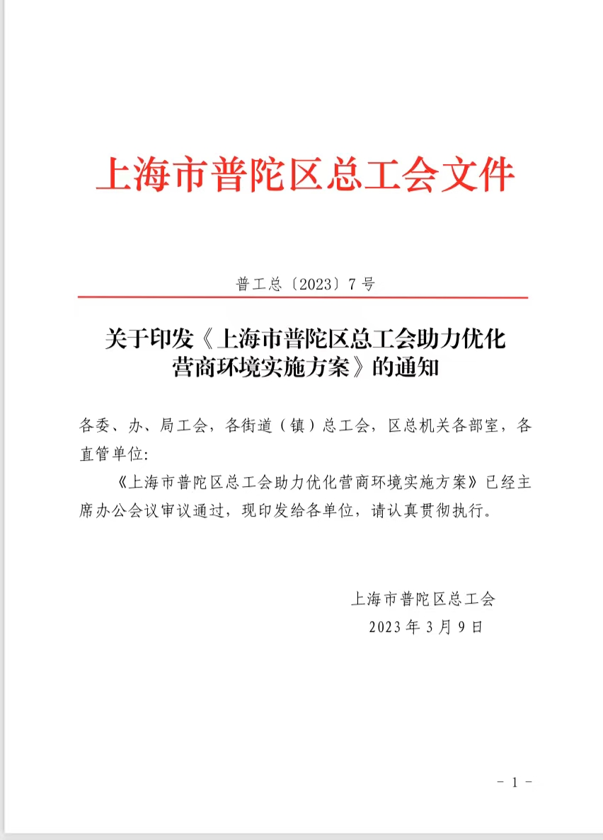 上海市普陀区总工会助力优化营商环境实施方案
