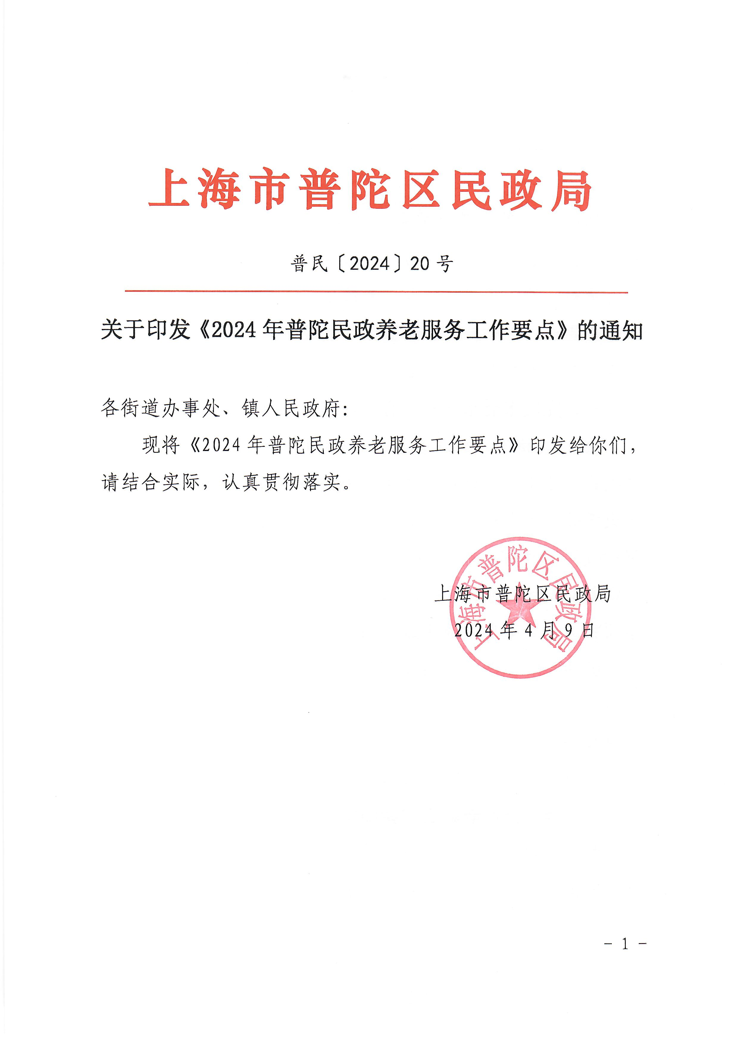 关于印发《2024年普陀民政养老服务工作要点》的通知