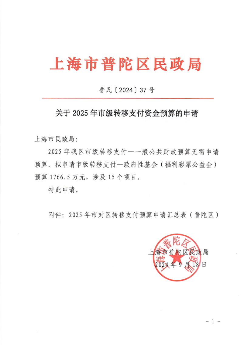 附件:2025年市对区转移支付预算申请汇总表(普陀区)
